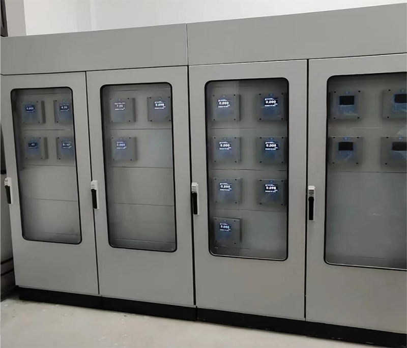 在此項目中,我司提供了一系列高質(zhì)量原水、濾后水及出廠水水質(zhì)在線檢測儀表,共計20余臺套。這些儀表包括超低量程濁度儀、非接觸式濁度儀、污泥濃度儀,電導(dǎo)率儀、ph儀、余氯儀、余臭氧儀、溶解氧儀等,為水廠運營提供了可靠的水質(zhì)檢測數(shù)據(jù)支撐。下圖為水質(zhì)儀表集中顯示電氣柜。